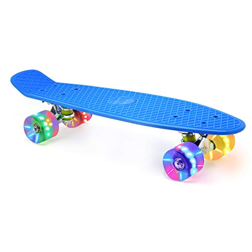 This mini cruiser’s deck is made from PP plastic, and with a single kick board, it’s an awesome skateboard for beginners. The deck is 22 inches long and 6 inches wide, and because of the material and size, this board is best for a total newbie or even a teenager that has some skill and just wants to have fun with a new board.